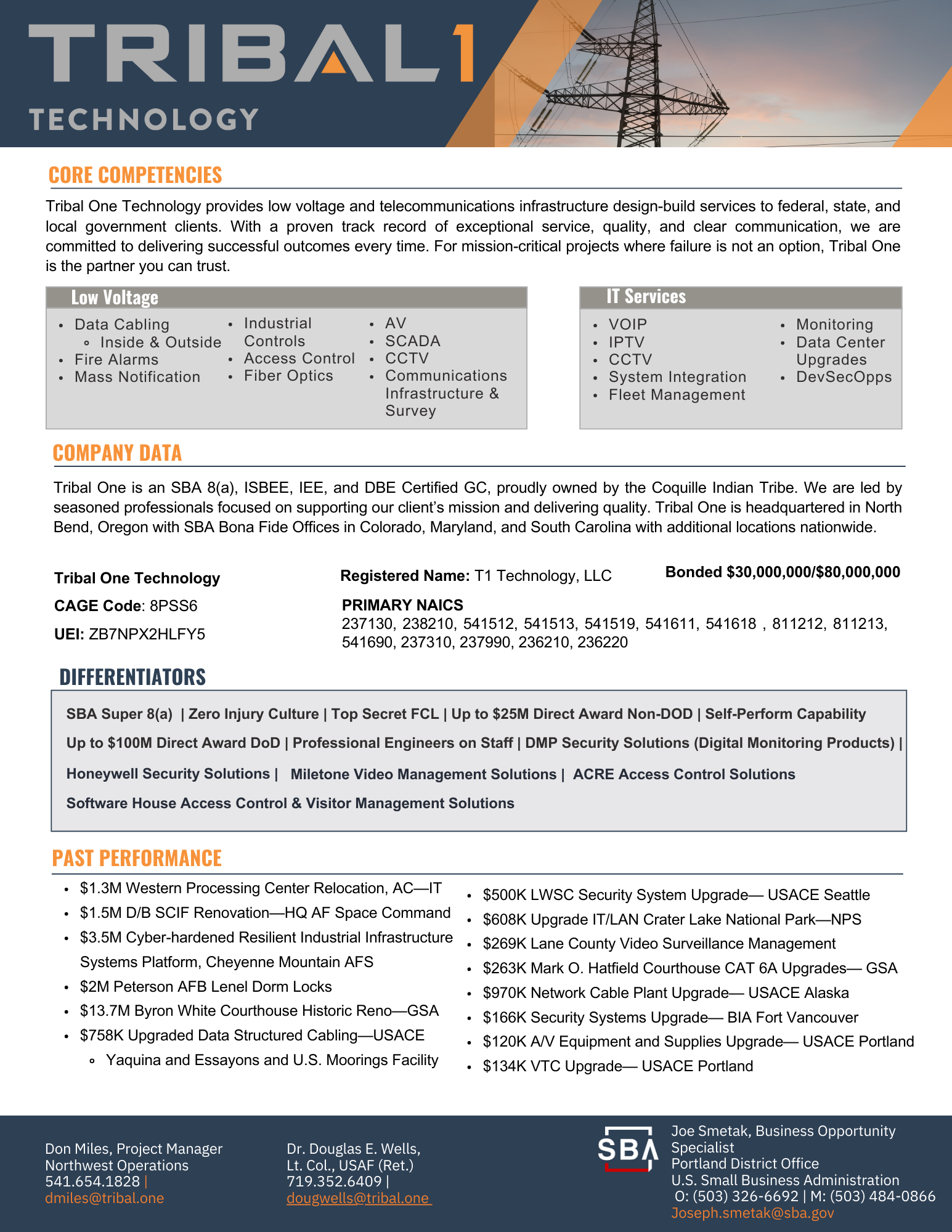 Tribal One Technology specializes in design/build of data/communications infrastructure in the federal government sector.